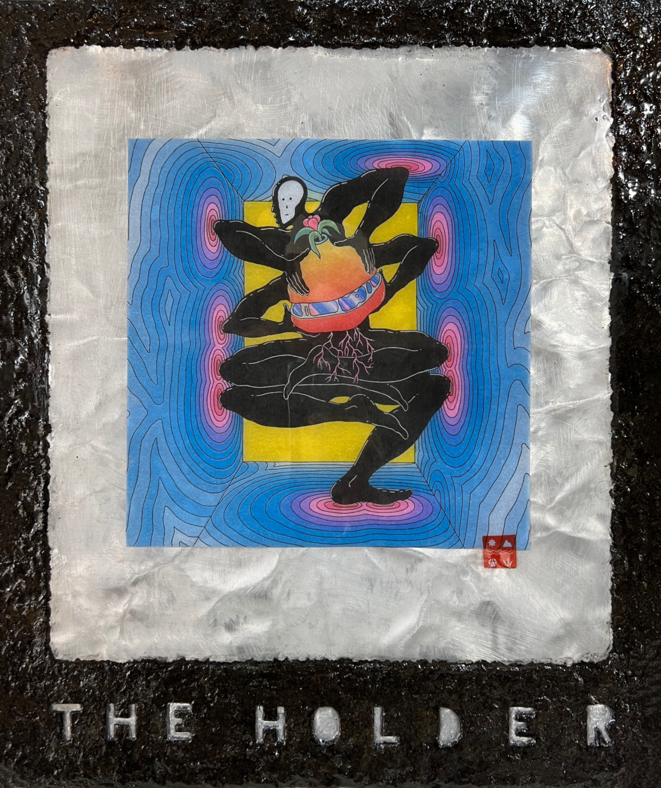 Hand-cut riso print on paper, mounted on aluminium plateon plywood framed with recyled card boardpapier mache, sealed with anti UV Resin 49.5 cm x 42 cm 2025